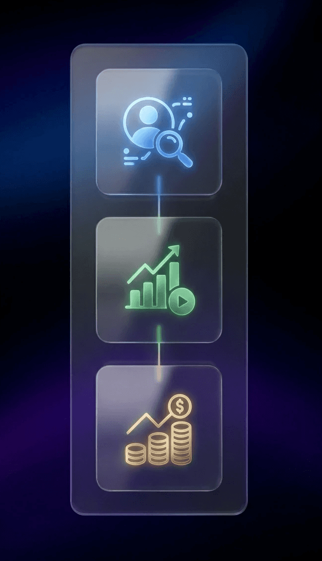 We start by understanding your audience, revenue signals, and existing assets. This allows us to define a clear baseline, identify what’s working, and uncover what’s missing before anything is built.